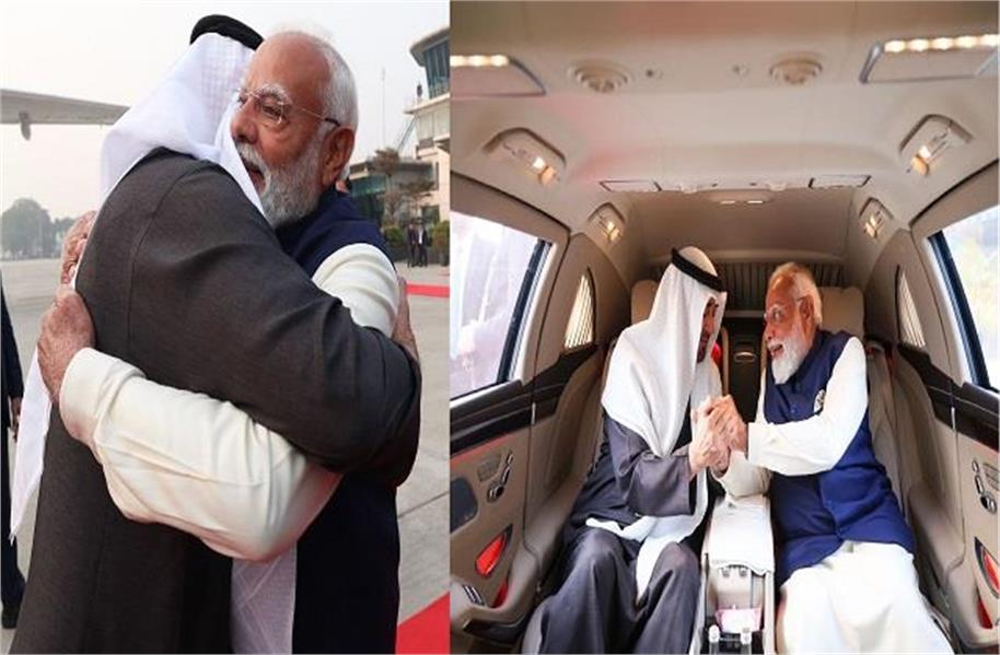 یو اے ای کے صدر پہنچے ہندوستان : وزیر اعظم مودی نے ایئرپورٹ پر گلے لگا کر کیا استقبال، کہا- ویلکم مائی برادر